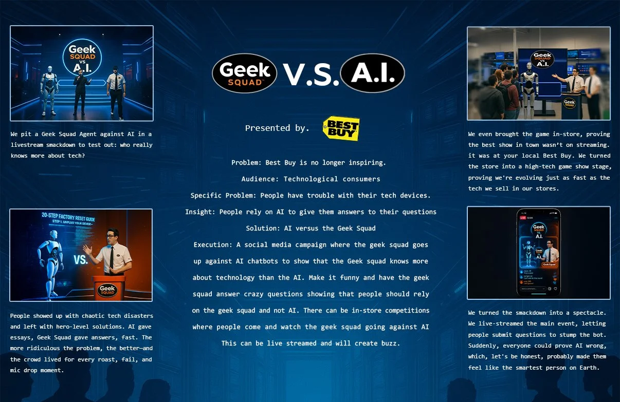 Execution: A social media campaign where the geek squad goes up against AI chatbots to show that